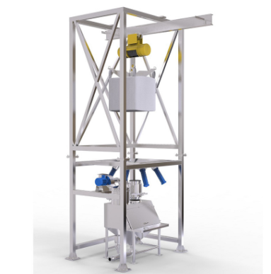 开袋系统常规设备有投料站,吸尘装置,吊包装置,储料斗,连接阀门,操作柜等。